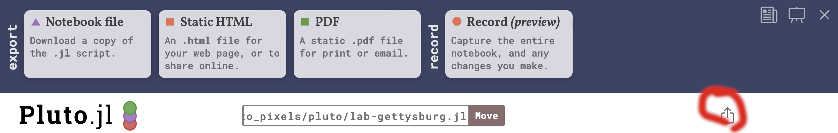 Note that web pages and PDFs are static files: they may look exactly like a Pluto notebook, but they’re not actually in Julia.